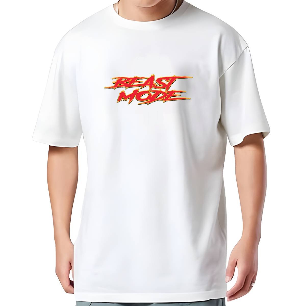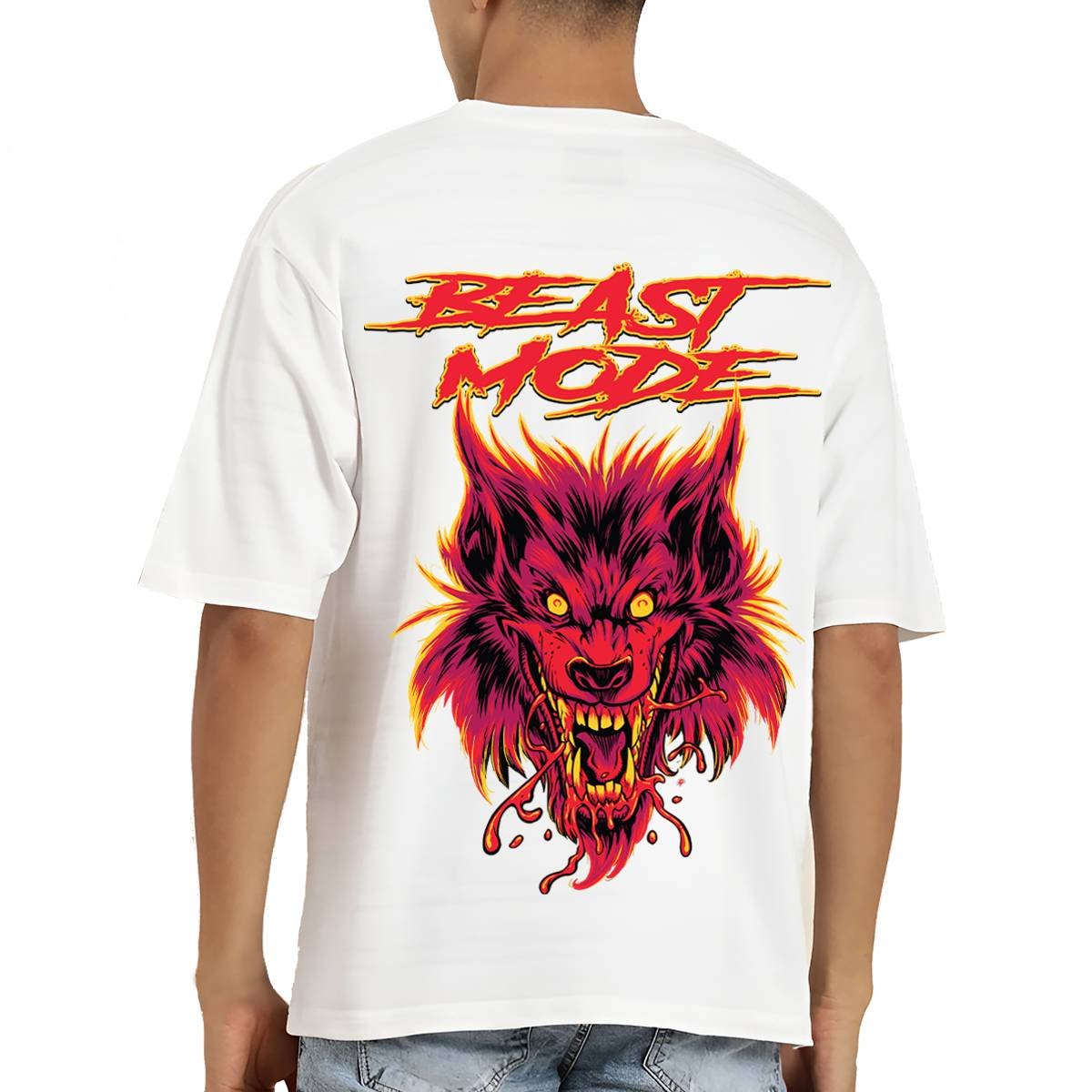 Printsflix Beat Mode Printed Pure Cotton Round Neck Drop Shoulder Baggy Fit White Oversized Tshirt -Unisex