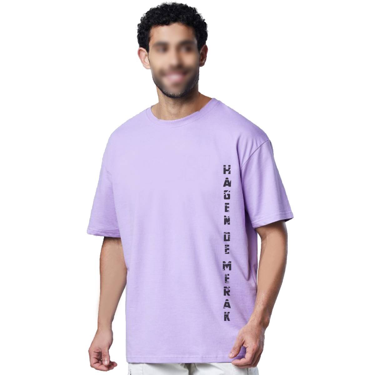 Printsflix Hegen De Merak Printed Drop Shoulder Pure Cotton Round Neck Lavender Oversized Tshirt – For Men/Women/Kids