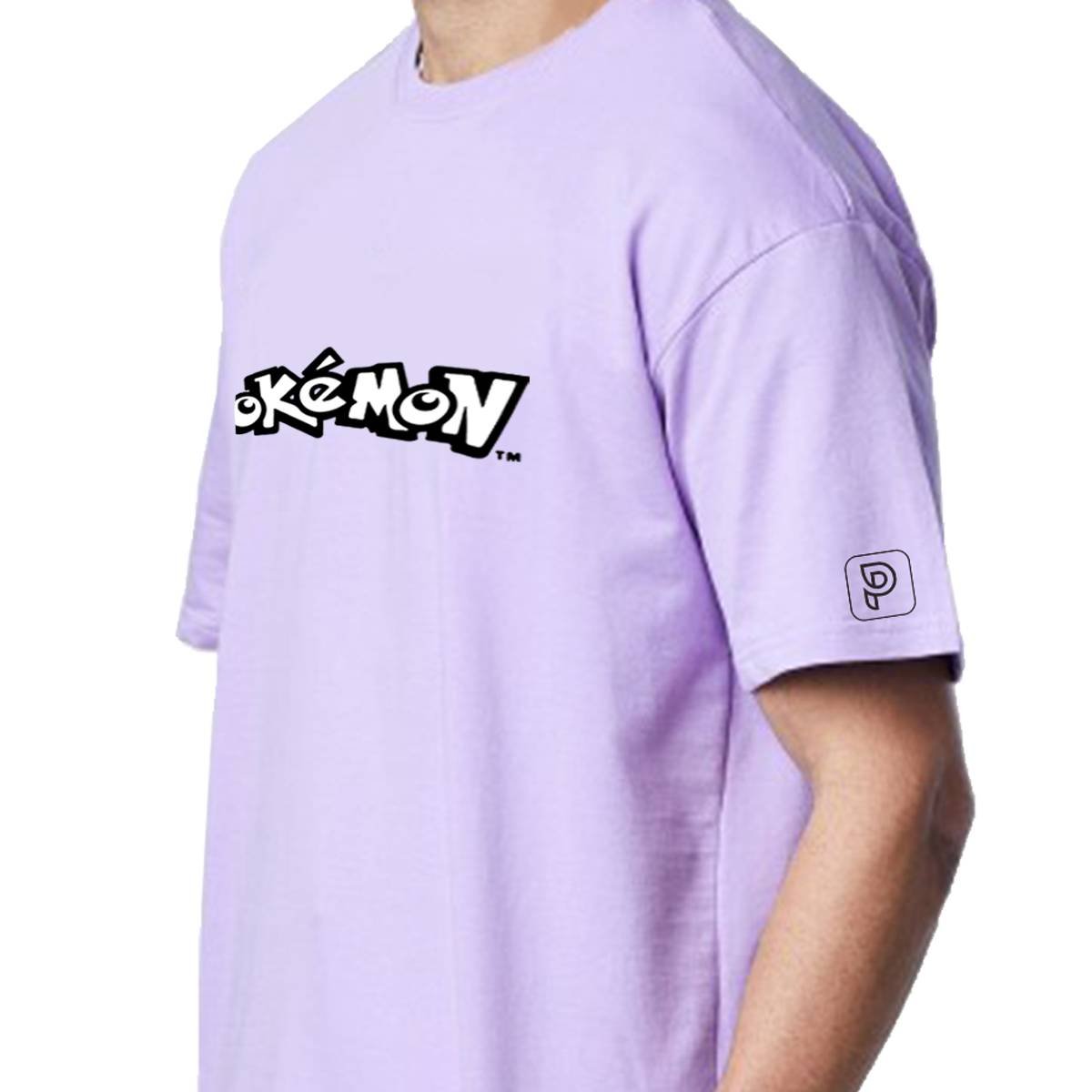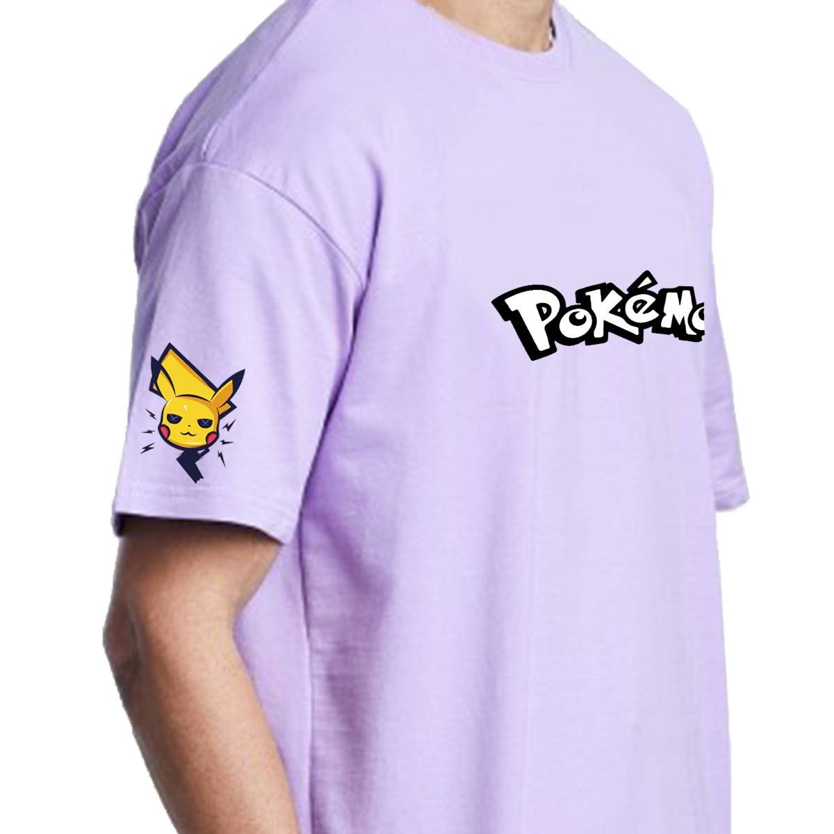 Printsflix Pikachu Pokemon Drop Shoulder Pure Cotton Round Neck Lavender Oversized Tshirt -Unisex