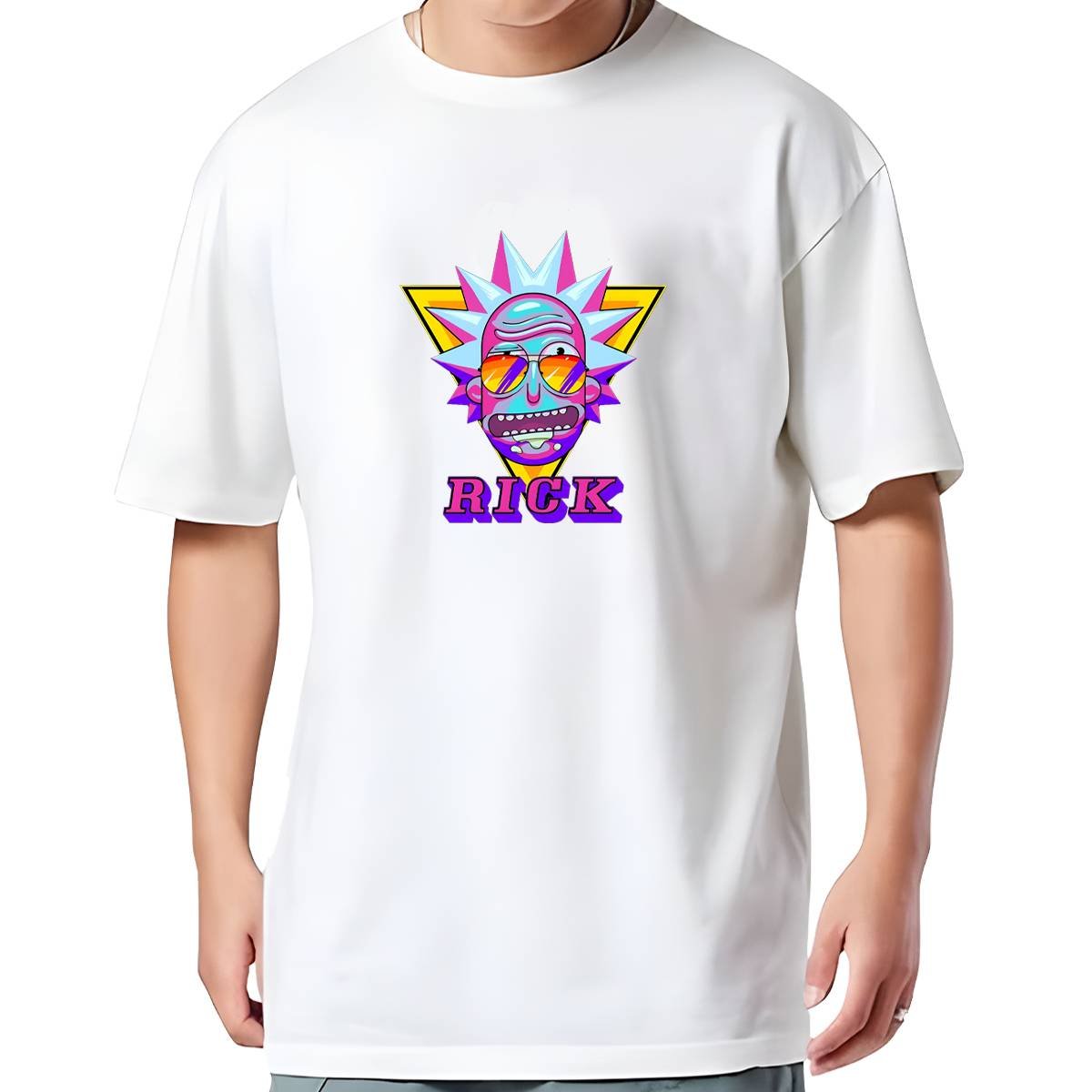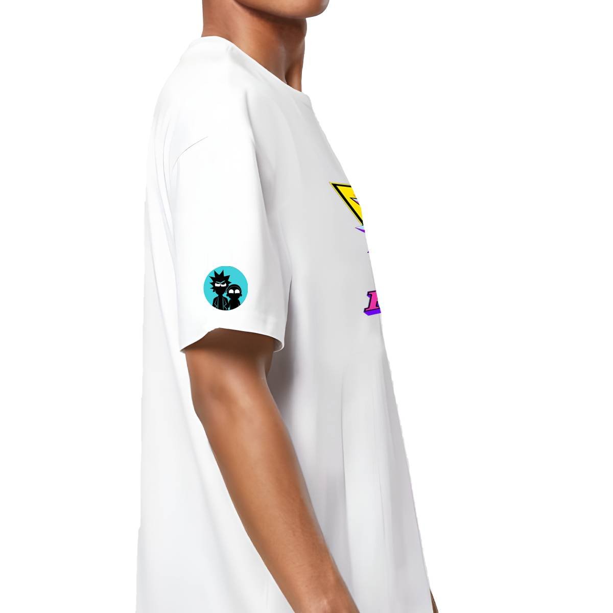 Printsflix Rick And Morty Printed Pure Cotton Round Neck Drop Shoulder Baggy Fit White Oversized Tshirt -Unisex