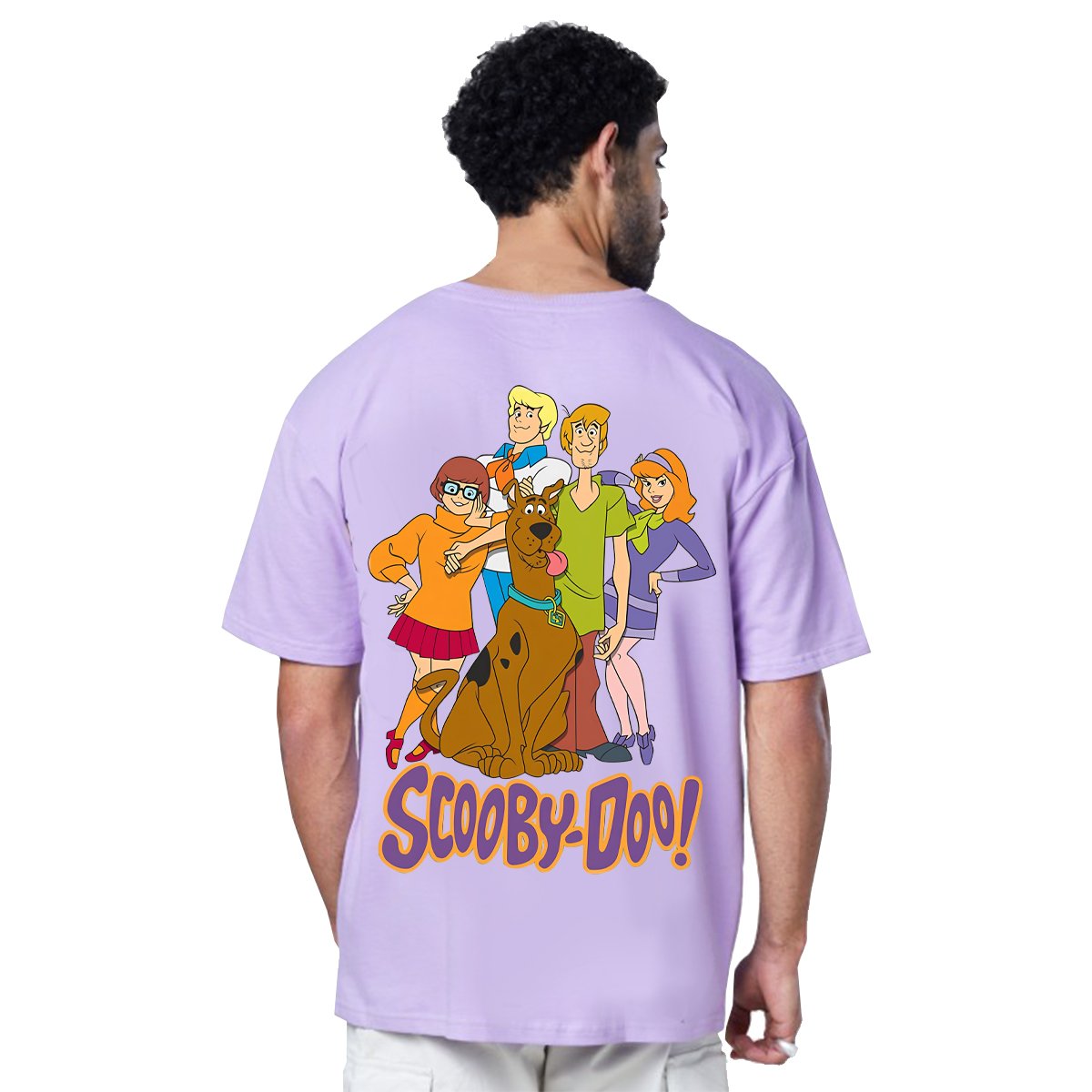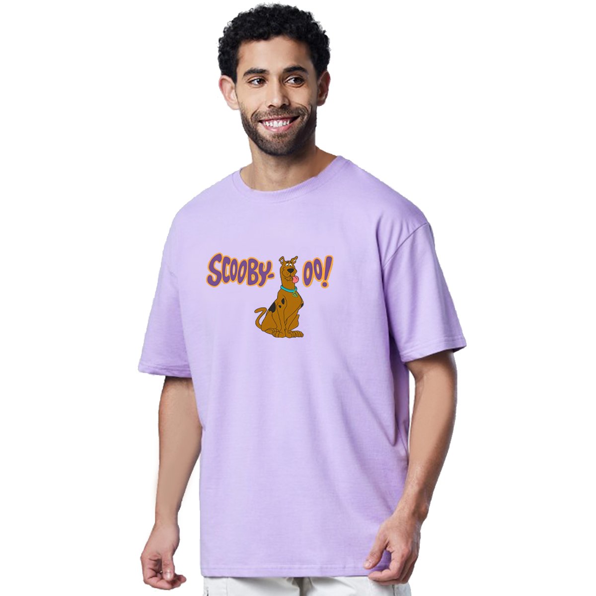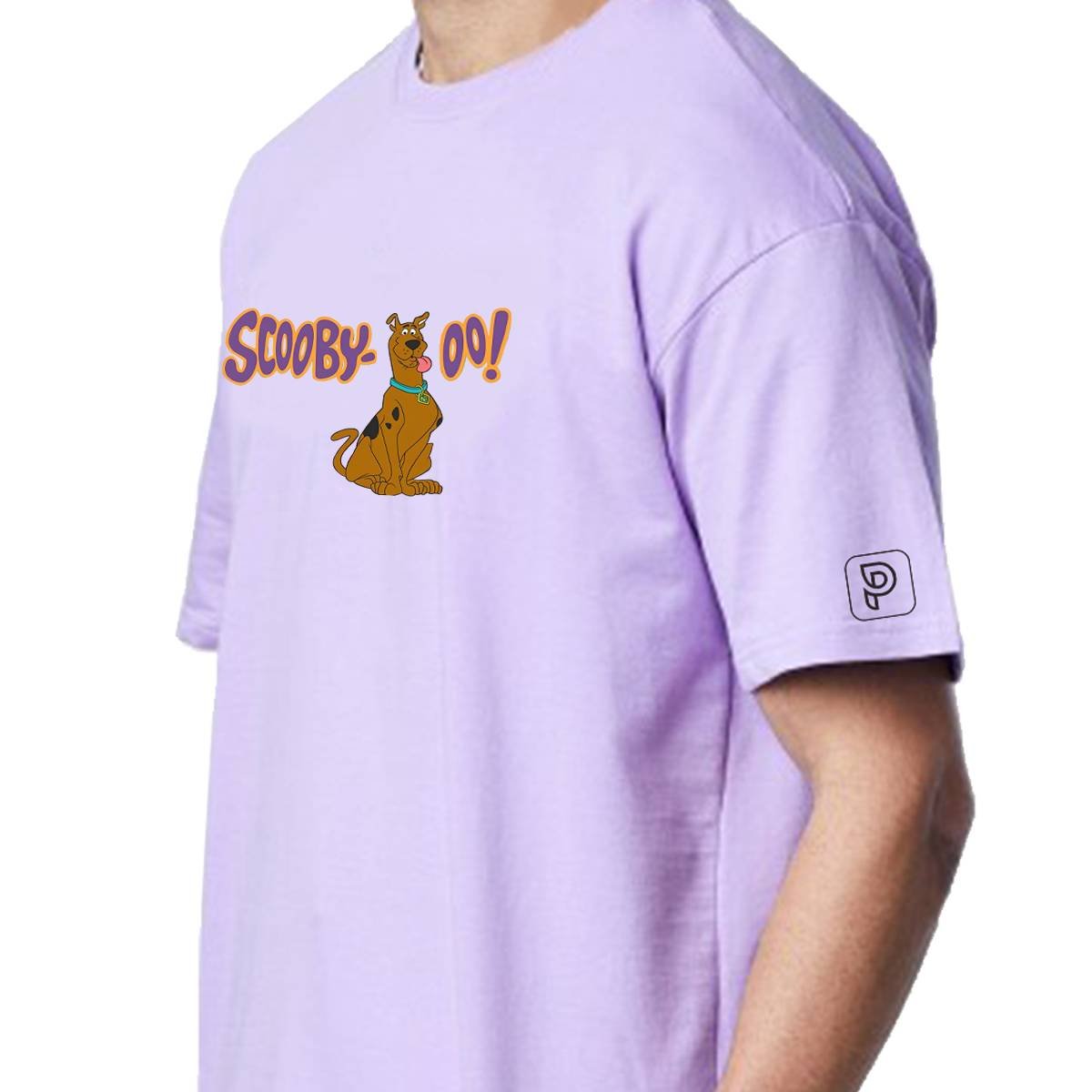Printsflix Scooby Doo Drop Shoulder Pure Cotton Round Neck Lavender Oversized Tshirt -Unisex