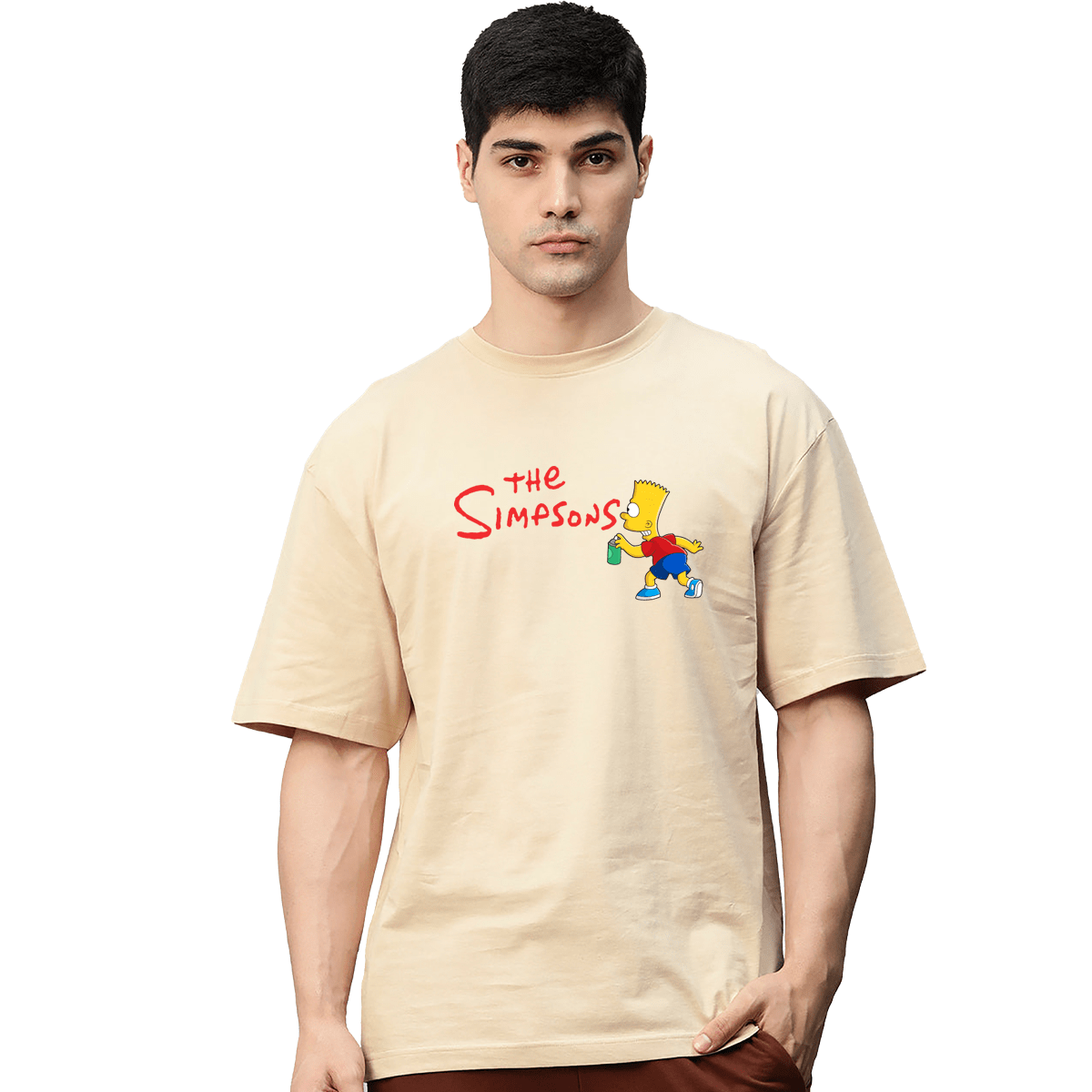 The Simpsons Beige Printed Pure Cotton Round Neck Drop shoulder Baggy Fit Oversized Tshirt Unisex
